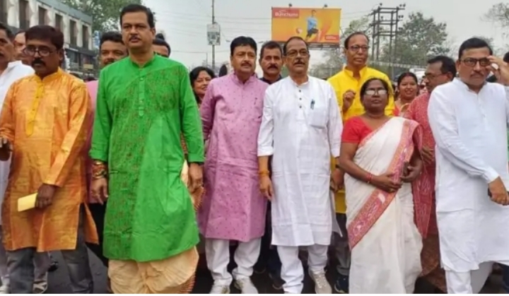 आसनसोल :(संवाददाता अनूप जोशी) बांग्ला नव वर्ष के उपलक्ष पर रविवार आसनसोल उत्सव कमेटी की ओर से भव्य शोभायात्रा निकाली गई।राज्य मंत्री मलय घटक के नेतृत्व में शोभा यात्रा आसनसोल चर्च मोड़ से जीटी रोड पर आगे बढ़ा और राहालेन म्यूनिसिपल पार्क में जाकर समाप्त हुआ। इस मौके पर सांस्कृतिक कार्यक्रम आयोजित किये गये।मंत्री मलय घटक ने राज्यवासियों को बांग्ला नव वर्ष की शुभकामनाएं दीं। इस कार्यक्रम में मंत्री के अलावा पश्चिम बर्दवान जिला तृणमूल कांग्रेस अध्यक्ष सह पांडवेश्वर के विधायक नरेंद्रनाथ चक्रवर्ती, आसनसोल नगर निगम के चेयरमैन अमरनाथ चटर्जी, उपमेयर अभिजीत घटक, एमएमआईसी इंद्राणी मिश्रा, बोरो चेयरमैन, पार्षद सहित बड़ी संख्या में स्थानीय लोग मौजूद थे।इस शोभा यात्रा का मुख्य आकर्षन था महिला ढाक शोभा यात्रा में ढाक बजाते महिला व पुरुष आकर्षण का मुख्य केंद्र थे। इस यात्रा में महिलाएं नृत्य करती हुई चल रही थी और युवा-युवतियों ने नृत्य प्रस्तुत किये जो लोगों के मन मोह रहे थे।बांग्ला नव वर्ष के उपलक्ष्य में बंगाली समुदाय के लोगों में हर्षो उल्लास का माहौल देखा गया।