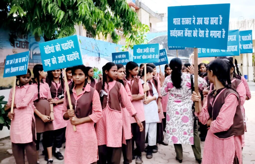 रैली मे छात्राओं ने बैनर-पोस्टर और तख्ती के साथ नारे लगाकर लोगों को सर्वाइकल कैंसर के प्रति जागरूक किया। रेनूबाला शर्मा ने लोगों को बताया कि सर्वाइकल कैंसर के मामले देश मे लगातार बढ रहे है जो एक बेहद चिंता का विषय है इसलिए जनपद गौतमबुद्धनगर मे महिलाओ मे सर्वाइकल कैंसर की रोकथाम को लेकर जिला प्रशासन गौतमबुद्धनगर एवम भारत सरकार टकसाल नोएडा द्वारा सरकारी स्कूल मे पढ रही 9 से 15 साल की बच्चियों को निशुल्क HPV टीकाकरण कराये जाने की जीवन रक्षक पहल की गयी है जिसका सभी को लाभ उठाना चाहिए और बच्चियों को वैक्सीन लगवानी चाहिए साथ ही सभी महिलाओ को समय समय पर जांच कराना आवश्यक है इसके लक्षण दिखाई देने पर सरकारी जिला अस्पताल मे जाकर निशुल्क जांच करायें और इसका समुचित इलाज करायें जागरूकता रैली मे संस्थापक डा.राहुल वर्मा, सहसचिव विजय तंवर, प्रधानाचार्य हरविंद्र सिंह, रंजु मिश्रा और महासचिव अनिल भाटी आदि ने हिस्सा लिया।