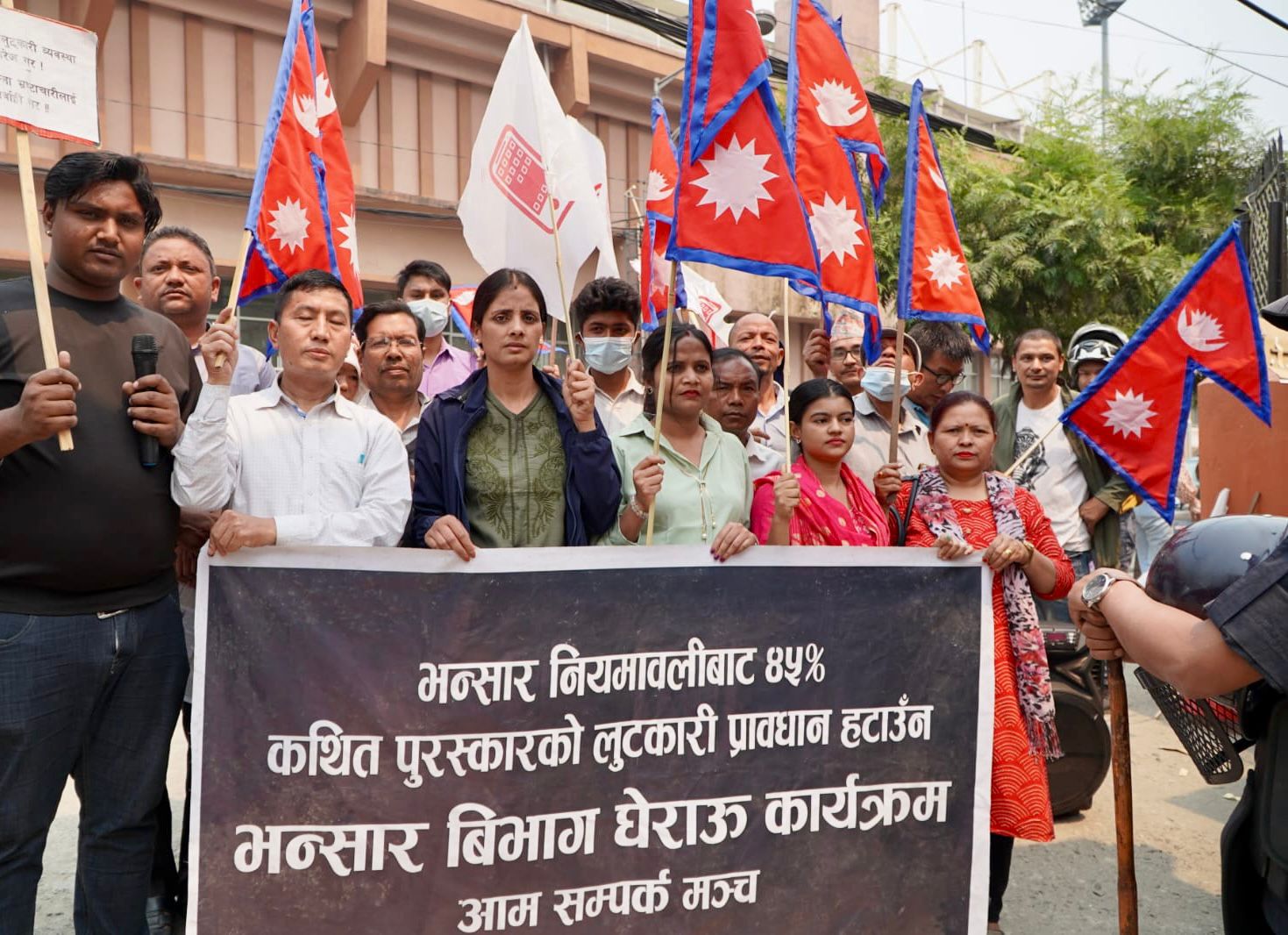 जनकपुरधाम। भंसार में तराई क्षेत्र की जनता के लूटने का काम तुरंत बंद करने तथा भंसार के संपूर्ण विभेदकारी कानून को हटाने के आम संपर्क मंच द्वारा विरोध में दुसरे दिन भंसार कार्यालय को घेराव किया गया। आजपा भंसार नियमावली में सूचित परिच्छेद 10को हटाने की मांग कर रही है, जिसमें पुरस्कार संबंधी प्रावधान है।