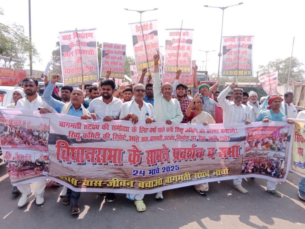 पटना। बागमती विनाशकारी बांध परियोजना के खिलाफ संघर्ष अब और तेज हो गया है। बागमती संघर्ष मोर्चा (गायघाट) के बैनर तले पटना के गर्दनीबाग धरना स्थल पर हजारों की संख्या में पीड़ित परिवार और आम जनता ने जुटकर विरोध प्रदर्शन किया।