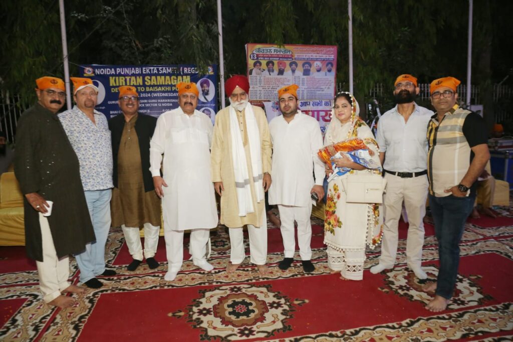 नोएडा। नोएडा पंजाबी एकता समिति द्वारा सेक्टर 12 के गुरद्वारा में बैसाखी का उत्सव बहुत ही धूमधाम से मनाया गया जो शाम 6 बजे से गुरुद्वारा सेक्टर -12 में बैसाखी का उत्सव शुरू हुआ। सर्वप्रथम शाम 6 बजे से शाम 7 बजे तक भाई चरणजीत सिंह जी द्वारा शब्द – कीर्तन किया गया एवं उसके पश्चात रात्रि 7 बजे 9.30 बजे तक भाई सरबजीत सिंह के द्वारा बहुत ही सुन्दर शब्द -कीर्तन का पाठ किया गया।उन्होंने बताया की बैसाखी के दिन सिखों के दसवें गुरु श्री गोबिंद सिंह जी वर्ष 1699 में खालसा पंथ की स्थापना की थी। शब्द -कीर्तन एवं अरदास के पश्चात लंगर का किया गया था जिसमें लगभग 900-1000 लोगों ने शब्द -कीर्तन का आनंद लिया एवं लंगर खाया।