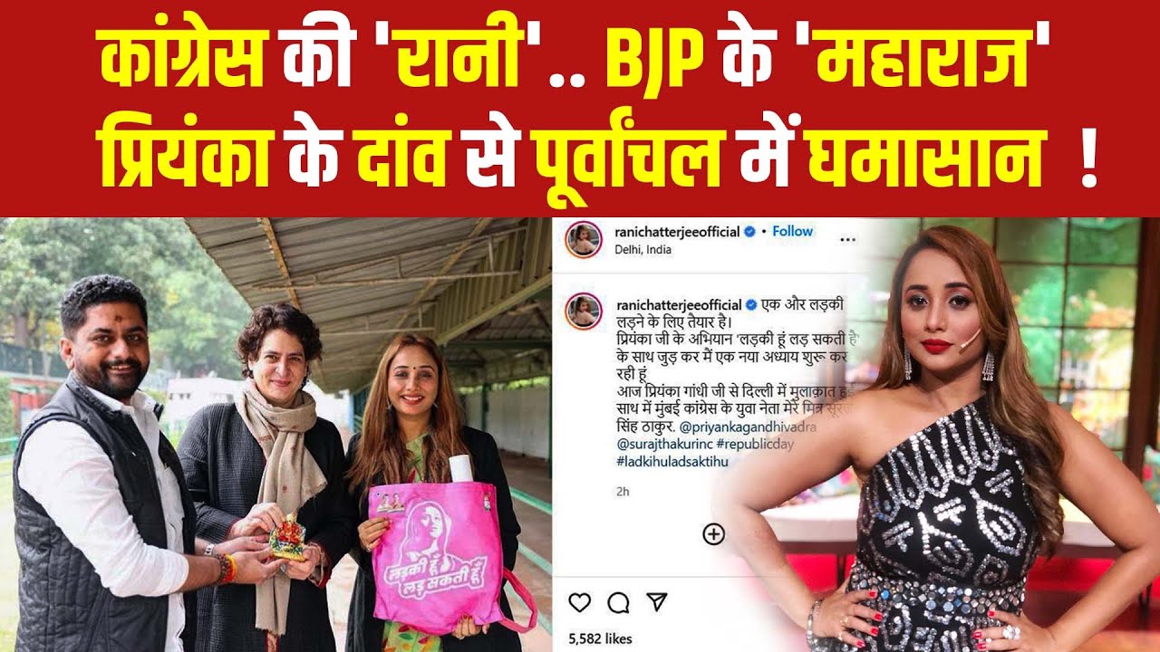 2022 में होने वाले पांच राज्यों में विधानसभा चुनाव (Assembly Election) को लेकर सियासी सरगर्मी तेज हो गई है…तो वहीं अब राजनीति के क्षेत्र में अब हर फिल्ड के लोग अपना-अपना हाथ आजमा रहे हैं।अब इसी राजनीतिक दौड़ में टीवी की मशहुर भोजपूरी एक्ट्रेस (Bhojpuri Actress) रानी चटर्जी (Rani Chatterjee) भी शामिल हो गई है….बता दें कि रानी चटर्जी ने सोशल मीडिया (Social Media) पर कांग्रेस नेता प्रियंका गांधी (Priyanka Gandhi) के साथ तस्वीर शेयर कर इस ओर इशारा कर दिया है कि अब एक्टिंग के साथ-साथ पॉलिटिक्स में भी जाने का प्लान कर रही हैं।