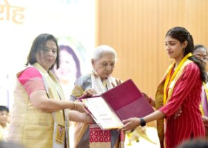 गाज़ियाबाद/भोजपुर/किरतपुर/बिजनौर/लखनऊ। जनपद बिजनौर के थाना किरतपुर के अंतर्गत आने वाले गांव भोजपुर की सृष्टि आर्य ने गाजियाबाद जाकर शिक्षा के क्षेत्र में बड़ी उपलब्धि हासिल की है। सृष्टि ने गाजियाबाद स्थित संतोष मेडिकल कॉलेज में बैचलर ऑफ आक्यूपेशनल थेरेपी (बीओटी) परीक्षा में सर्वाधिक अंक प्राप्त किये हैं। सृष्टि ने 3400 में से 2493 अंक (73.32) प्राप्त कर कॉलेज टॉप किया। इस उपलब्धि पर राज्यपाल आनंदीबेन ने गोल्ड मेडल प्रदान कर सृष्टि को सम्मानित किया। संतोष मेडिकल कॉलेज चौधरी चरण सिंह विश्वविद्यालय के अंतर्गत आता है।