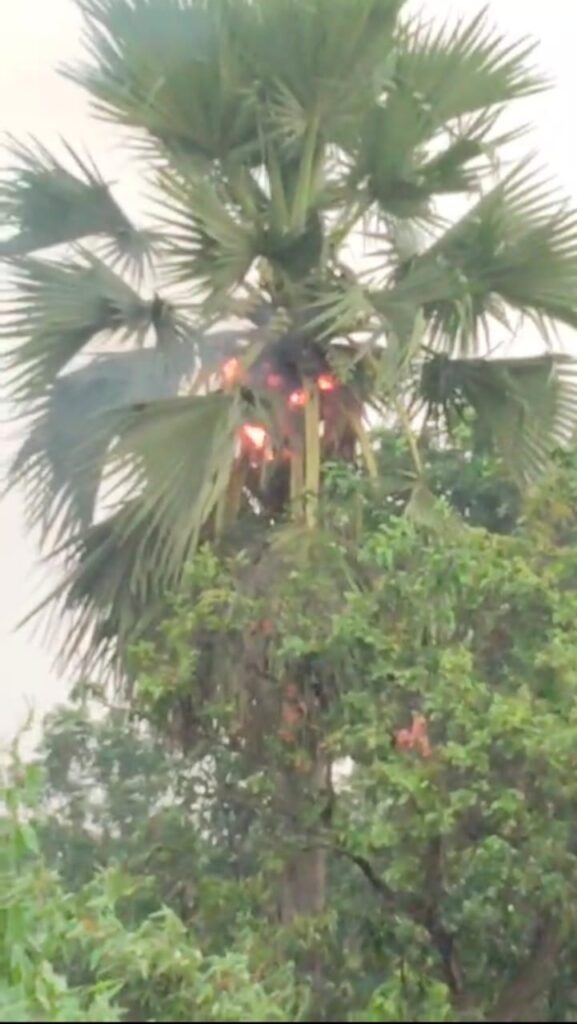 मुजफ्फरपुर जिला क्षेत्र में तार के पेड़ पर गिरा ठनका