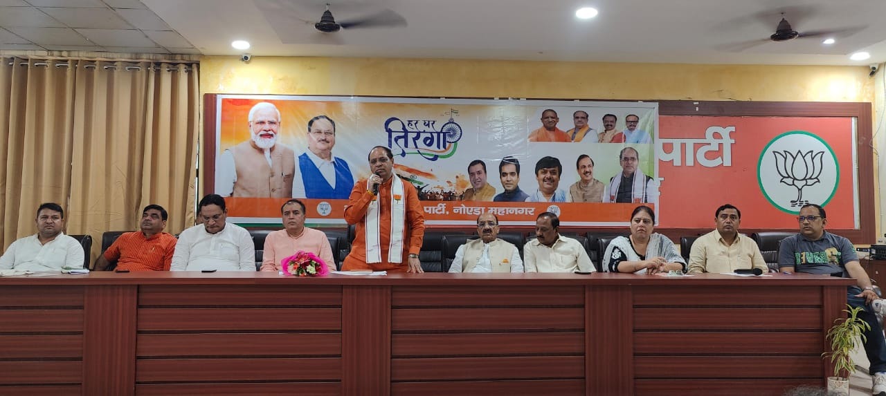 नोएडा। शुक्रवार को नोएडा भाजपा द्वारा ज़िला कार्यालय सेक्टर 116 में हर घर तिरंगा व तिरंगा यात्रा को लेकर विशेष कार्यशाला का आयोजन किया गया जिसमें मुख्य अतिथि के रूप में क्षेत्रीय अध्यक्ष श्री सतेंद्र सिसोदिया रहे। इस कार्यशाला की अध्यक्षता जिलाध्यक्ष मनोज गुप्ता ने की।
