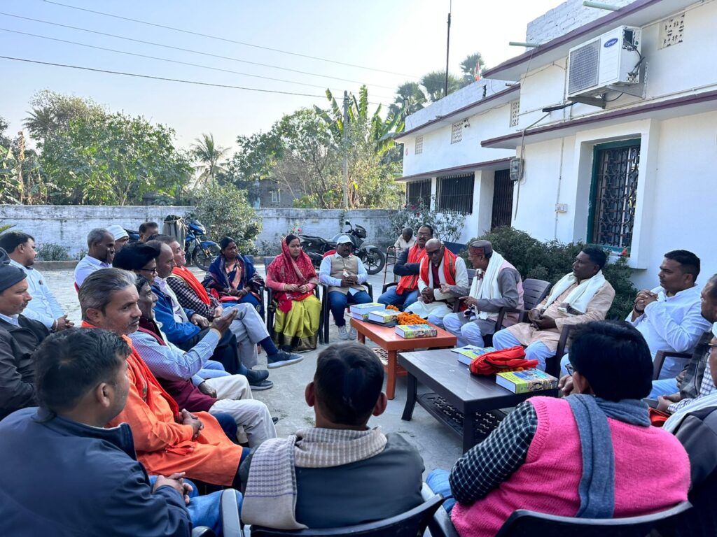वैशाली, मोहन कुमार सुधांशु। पटेढ़ी बेलसर के अफजलपुर गाँव में सीए अभिषेक राज उर्फ राजा भैया के आवास पर भाजपा वैशाली विधानसभा के कार्यकर्ताओं की महत्वपूर्ण बैठक आयोजित की गई। बैठक में भाजपा जिला अध्यक्ष अजब लाल साह, जिला उपाध्यक्ष पंकज यादव, जिला प्रभारी संजय सहाय, विधानसभा प्रभारी अजीत पांडेय और महिला मोर्चा उपाध्यक्ष प्रतिभा देवी सहित कई प्रमुख नेता उपस्थित रहे।