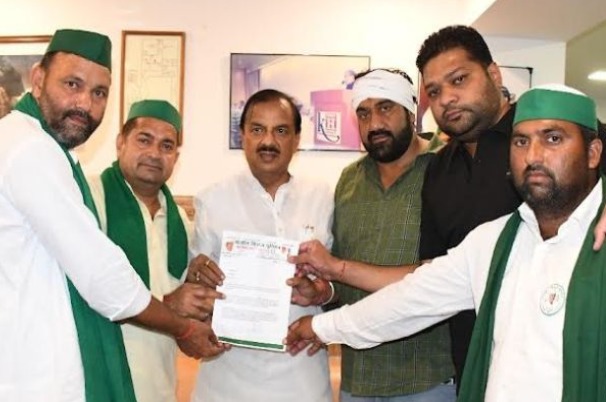भारतीय किसान यूनियन गुट के जिलाध्यक्ष अशोक भाटी के नेतृत्व में संगठन के एक प्रतिनिधि मंडल ने गौतमबुद्धनगर लोकसभा क्षेत्र से सांसद व पूर्व केंद्रीय मंत्री डॉ महेश शर्मा से मुलाकात की और अपनी मांगों को लेकर एक ज्ञापन सौंपा है। ज्ञापन में कृषि नीति में बदलाव की आवश्यकता तथा किसानों की आजीविका पर विचार करने के साथ ही काफी लंबे समय से किसानों की चली आ रही एमएसपी के साथ खरीद, व्यापक ऋण माफ एवं बिजली के निजीकरण को निरस्त करने जैसी कई मांगे उठाई गई है।