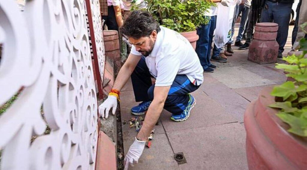 स्वच्छता अभियान के तहत भाजपा व केंद्र सरकार के कई मंत्री जगह-जगह सफाई अभियान में हिस्सा लेते दिखाई दे रहे हैं। इसक तहत केंद्रीय खेल मंत्री अनुराग ठाकुर ने भी दिल्ली के चांदनी चौक में मेगा स्वच्छता अभियान का शुभारंभ किया। इसका एक वीडियो सोशल मीडिया पर वायरल हो रहा है। इस वीडियो में अनुराग ठाकुर अपने हाथों से कचरा उठाते दिख रहे हैं। जिस पर लोगों ने अपनी प्रतिक्रिया दी है।