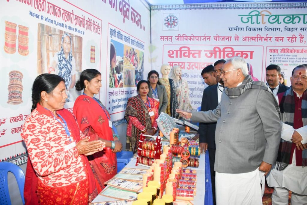 पटेढ़ी बेलसर प्रखंड के नगवा गांव में प्रगति यात्रा के दौरान मुख्यमंत्री नीतीश कुमार ने जीविका दीदियों का हाल पूछा. जीविका समूह के प्रखंड परियोजना प्रबंधक शोभा कुमारी के नेतृत्व में जीविका दीदियों द्वारा स्वागत किया गया। वही जीविकादीदी कंचन देवी, अंजू देवी,रीना देवी,बबिता देवी, निर्मला देवी, शोभा,नीतू कुमारी, गुड़िया कुमारी,मीना देवी,नीला देवी सहित अन्य जीविका दीदियों द्वारा पर्दशनी लगाई गई थी ,जिसमे नीरा, डिजिटल टेबलेट, स्वास्थ्य किट, ग्राहक सेवा केंद्र , मशरूम, श्री अन्य,शहद उत्पादन, दीदी की नर्सरी, सहित विभिन्न सामग्रियों का पर्दशनी लगाया गया था. साथ ही जीविका से जुड़ी महिलाओ ने सीएम से रोजगार देने की मांग भी किया। अगरबती,पापड़, कपड़ा, सिलाई मशीन सहित अन्य रोजगार की जानकारी सीएम ने लिया। सीएम के स्वागत में रंगोली भी बनाई गई थी. वही जीविका दीदियों को सतत जीविकोपार्जन योजना के तहत ई रिक्सा सौपा. साथ ही मुख्यमंत्री श्री कुमार ने आवास योजना के तहत जीविका दीदियों को आवास की चाभी सौपी। प्रगति यात्रा के दौरान दिव्यंगों को मोटरचालित ट्राई साइकिल दिया गया। मुख्यमंत्री नीतीश कुमार ने दिव्यांग कमलेश कुमार, पवन कुमार साह, रामनाथ कुमार, मो आजम एवं नीरज कुमार को बैट्री चलित ट्राई साइकिल की चाभियां सौपी। साथ ही हेमलेट भी सौं।. सभी दिव्यांग ट्राई साइकिल पाकर काफी खुश दिख रहे थे।