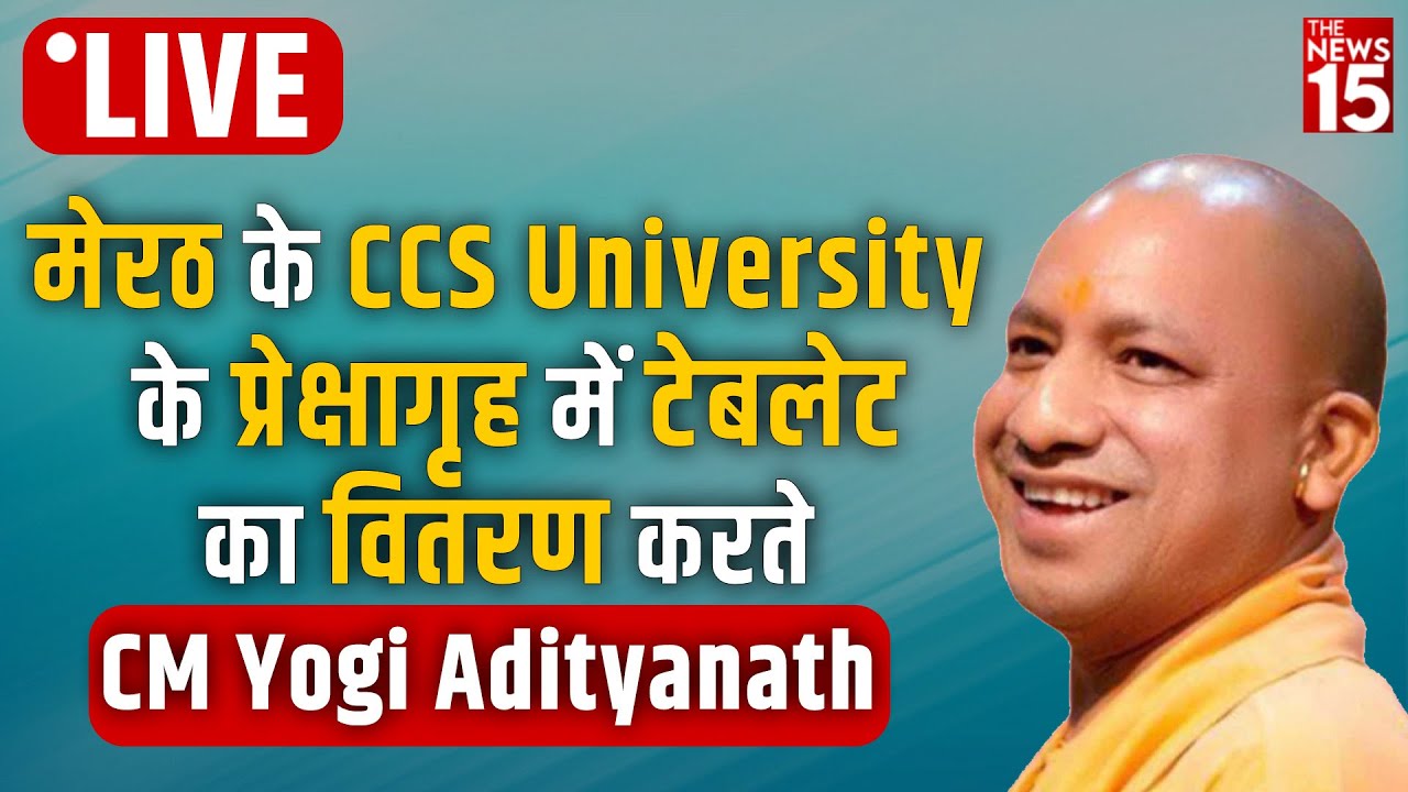 मेरठ के CCS University के प्रेक्षागृह में टेबलेट का वितरण करते CM Yogi Adityanath | The News15 Live