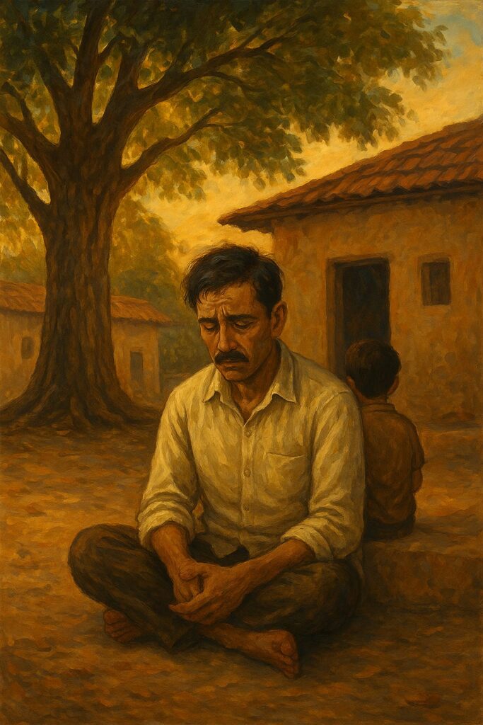 एक शाम, जब घर के आँगन में पीपल की पत्तियाँ सरसराईं, बड़ा भाई चुपचाप अपने बेटे को गोद में लेकर बैठा था। बेटा मासूमियत से पूछ बैठा —