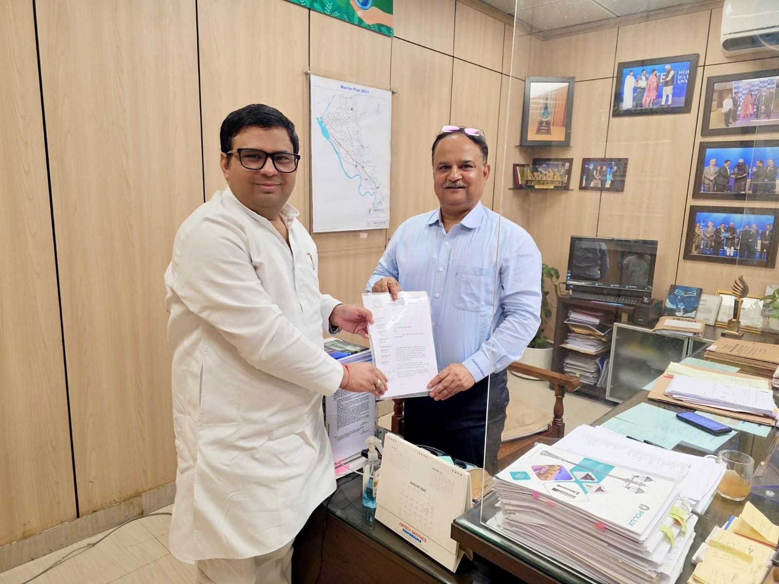 नोएडा सेक्टर 5 स्थित नॉएडा जल विभाग के कार्यालय में नॉएडा विलेज रेसिडेंट्स एसोसिएशन के अध्यक्ष डॉक्टर रंजन तोमर ने नॉएडा प्राधिकरण के जीएम श्री आरपी सिंह से मुलाकात की एवं ग्रामीण क्षेत्रों से सम्बंधित एक मांगपत्र उन्हें सौंपा , संवाददाताओं से बात करते हुए श्री तोमर ने कहा की उन्होंने रोहिल्लापुर गाँव में बची हुई जगहों पर सीवर लाइन और जल लाइन सम्बंधित ज्ञापन दिया एवं सदरपुर , छलेरा एवं सदरपुर कॉलोनी में जहाँ पानी की पाइपलाइन आ चुकी है पर पानी उसके बाद भी चालू नहीं किया गया है उस बाबत श्री सिंह से बात रखी , जिसके बाद उन्होंने जल्द से जल्द उसके निस्तारण की बात कही और कहा की जल्द ही जहाँ पाइपलाइन डल चुकी है वहां पानी आएगा।