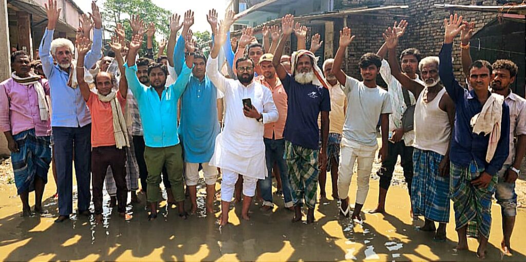 माधोपुर मधुमालत पंचायत के कमिटी बाजार के पास वर्षों से बनी जलजमाव की समस्या के खिलाफ शुक्रवार को स्थानीय ग्रामीणों ने जमकर विरोध प्रदर्शन किया। पानी में खड़े होकर जनप्रतिनिधियों के खिलाफ नारेबाजी करते हुए ग्रामीणों ने कहा कि “विधायक तो बदल गए, लेकिन हालात आज भी जस-के-तस हैं।”