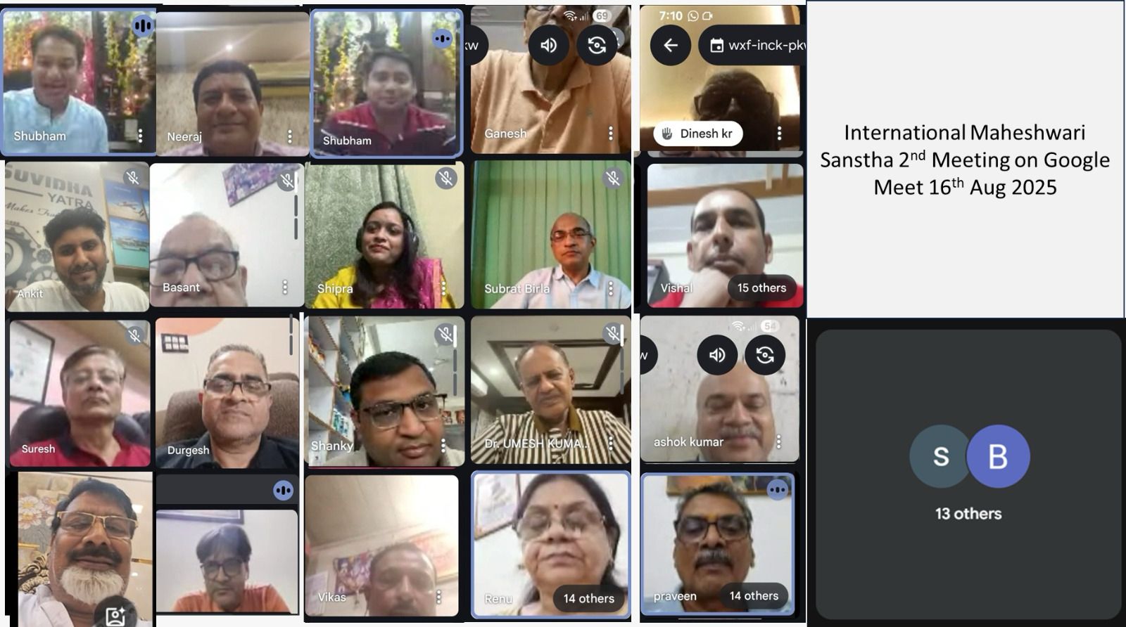 जन्माष्टमी पर एक जूम मीटिंग अनुप माहेश्वरी के सहयोग से आयोजित की गई जिसमें जिसमें समाज के 25 -30 सक्रिय सदस्यों ने भाग लिया । अपने-अपने क्षेत्र के अनुभवी व्यक्तियों ने अपने अनुभव साझा किया ।