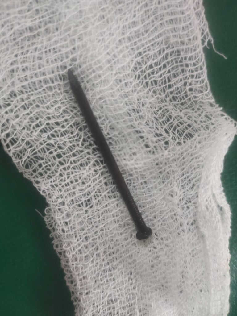 सिरहा जिला के मिर्चैया नगरपालिका के भागवतपुर गांव के 11 वर्षीय विशाल पंडित ने खेल-खेल में ऐसी गलती कर दी, जो जानलेवा साबित हो सकती थी। विशाल खेलते समय 3 इंच लंबी कांटी को मुंह में रखे हुए था, जो अनजाने में उसके गले से नीचे उतर गई और छोटी आंत में जाकर फंस गई।