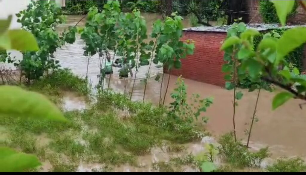 मौसम खराब के कारण पहाड़ों पर लगातार मूसलाधार बारिश होने के कारण नजीबाबाद की मालन नदी सोमवार को उफान पर बहती हुई दिखाई दी जिसे देखकर यह लग रहा था कि मानो मालन नदी अपने साथ सब कुछ बहाकर ले जाएगी और उसका यह असर उसे समय देखने को मिला जब नजीबाबाद की कछियाना बस्ती जलमग्न दिखाई दी लोग सुरक्षित स्थानों पर जाते हुए दिखाई दिए अक्सर बरसात के मौसम में नजीबाबाद की मालन नदी उफान पर बहती हुई दिखाई देती है जिसका हर जाना नजीबाबाद की कछियाना बस्ती के लोगों को भुगतना पड़ता है। ज्यादा पानी आ जाने के कारण कछियाना बस्ती के लोगों के घरों में पानी घुस जाता है। जल भराव होने के कारण जहरीले जानवर भी घरों में घुस जाते हैं जिसके कारण जान माल का खतरा बना रहता है। और लोगों को खौफ के साए में अपनी जिंदगी को बताने पर मजबूर होना पड़ता है। इसी बीच सोमवार को भी नजीबाबाद की कछियाना बस्ती में जल भराव होने के कारण वहां के लोगों का जीवन अस्त व्यस्त हो गया मौके पर आलाधिकारियों ने पहुंचकर निरीक्षण किया और हर संभव मदद का भरोसा दिलाया।