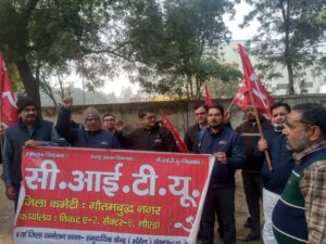 ग्रेटर नोएडा। 4 जनवरी 2024 को मजदूर नेता गंगेश्वर शर्मा के ऊपर किए गए जानलेवा हमले के दोषी मैसर्स- मानिताऊ इक्यूपमेंट इण्डिया प्रा०लि०, प्लाट नं०-22 उधोग विहार, ग्रेटर नोएडा कंपनी प्रबंधन, ठेकेदार, बाहरी गुंडों व मौके पर मौजूद पुलिस कर्मियों के खिलाफ संगीत धाराओं के तहत मुकदमा दर्ज कर कार्यवाही करवाने और कर्मचारियों की सभी समस्याओं का समाधान करवाते हुए कार्य से रोके गए सभी संविदा कर्मचारियों को ड्यूटी पर पुनः बहाली की मांग को लेकर सीटू दिल्ली एनसीआर राज्य कमेटी के आह्वान पर आज नोएडा, ग्रेटर नोएडा, दिल्ली, गाजियाबाद, गुरुग्राम आदि पूरे एनसीआर क्षेत्र में विभिन्न मल्टीनेशनल कंपनियों के गेटों पर जगह-जगह सीटू से जुड़े कर्मचारियों ने विरोध प्रदर्शन किया।