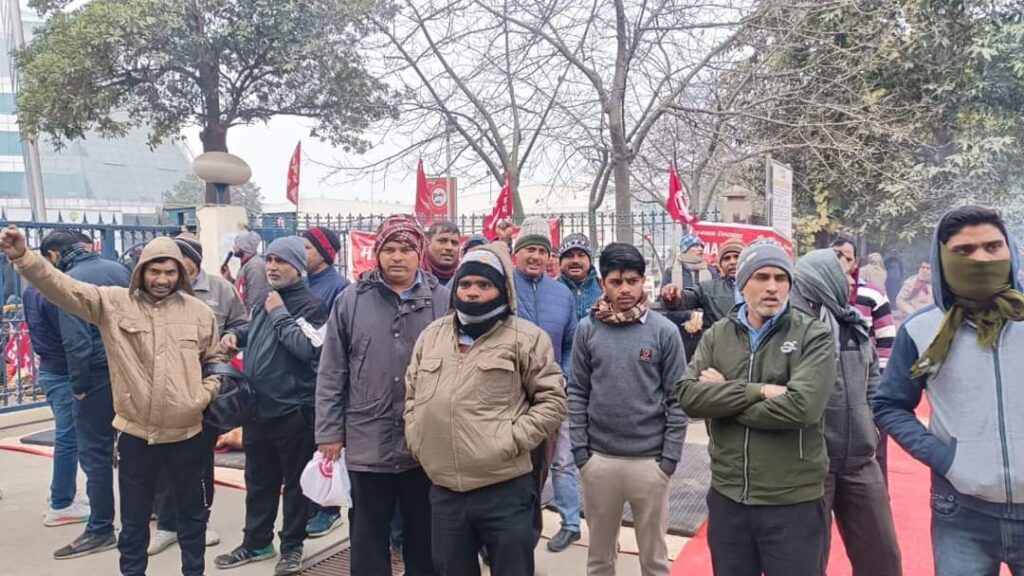 ग्रेटर नोएडा। 4 जनवरी 2024 को मजदूर नेता गंगेश्वर शर्मा के ऊपर किए गए जानलेवा हमले के दोषी मैसर्स- मानिताऊ इक्यूपमेंट इण्डिया प्रा०लि०, प्लाट नं०-22 उधोग विहार, ग्रेटर नोएडा कंपनी प्रबंधन, ठेकेदार, बाहरी गुंडों व मौके पर मौजूद पुलिस कर्मियों के खिलाफ संगीत धाराओं के तहत मुकदमा दर्ज कर कार्यवाही करवाने और कर्मचारियों की सभी समस्याओं का समाधान करवाते हुए कार्य से रोके गए सभी संविदा कर्मचारियों को ड्यूटी पर पुनः बहाली की मांग को लेकर सीटू दिल्ली एनसीआर राज्य कमेटी के आह्वान पर आज नोएडा, ग्रेटर नोएडा, दिल्ली, गाजियाबाद, गुरुग्राम आदि पूरे एनसीआर क्षेत्र में विभिन्न मल्टीनेशनल कंपनियों के गेटों पर जगह-जगह सीटू से जुड़े कर्मचारियों ने विरोध प्रदर्शन किया।