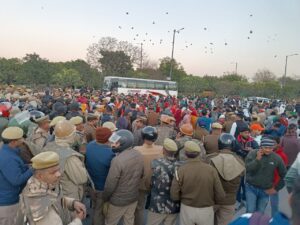 गौतम बुद्ध नगर पुलिस द्वारा किसानों के शांतिपूर्ण आंदोलन को तानाशाही पूर्ण तरीके से कुचलने की कोशिश-अखिल भारतीय किसान सभा के जिला अध्यक्ष डॉ रुपेश वर्मा जिला संयोजक वीर सिंह नागर नितिन चौहान प्रशांत भाटी मोहित नागर गंगेश्वर दत्त शर्मा निशांत रावल सुनील फौजी गबरी मुखिया दुष्यंत सेन को पुलिस ने अलग-अलग जगह किया नजर बंद-सादोपुर बादलपुर के सैकड़ो कार्यकर्ताओं को जिला महासचिव जगबीर नंबरदार निरंकार प्रधान सहित पूरे दिन अंबेडकर पार्क में रखा नजर बंद-नजरबंदी के बावजूद किसान सभा के सैकड़ो कार्यकर्ता अजब सिंह नेताजी गुरप्रीत एडवोकेट सुरेंद्र भाटी पप्पू ठेकेदार यतेंद्र मैनेजर सुरेंद्र यादव मुकुल यादव मोहित यादव के नेतृत्व में दिल्ली कूच कार्यक्रम में महामाया फ्लाईओवर पर पहुंचे-वहीं पर पुलिस के साथ काफी संघर्ष के बाद नोएडा ग्रेटर नोएडा रोड पर दलित प्रेरणा स्थल के सामने हजारों की तादाद में बैठ गए, जिससे वहां पर ट्रैफिक जाम हो गया पुलिस के सीनियर अधिकारियों ने वार्ता का प्रस्ताव रखा जिसमें 8:00 बजे कमिश्नर ऑफिस सूरजपुर में वार्ता तय हुई है।