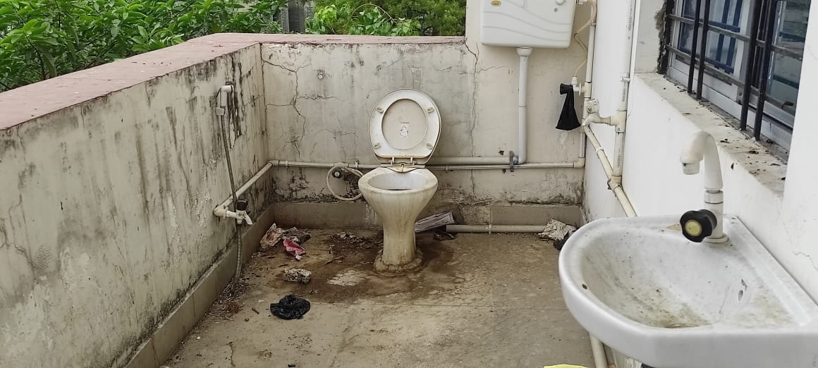 मग की जगह पाइप और पास में हाथ धोने के लिए वास बेसिन भी लगाया गया है। यह उत्तम व्यवस्था खुले आसमान के नीचे है। यह ओपेन एयर बाथरूम शतप्रतिशत पारदर्शी है। हाॅल के शीशे की खिड़की से साफ साफ बाथरूम के पुरुष अथवा महिला को देखा जा सकता है।