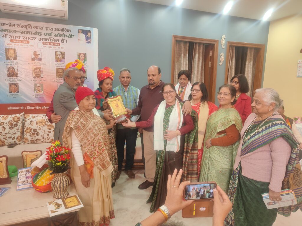 ‘विद्या-प्रेम’ संस्कृति न्यास द्वारा 1 मार्च 2024 को सम्मान समारोह एवं संगोष्ठी का आयोजन किया गया। माता विद्या पांडेय ने आयोजन के प्रांगण में बिखरे हुए आनंद को यूं ही बिखरे रहने का आशीर्वाद दिया। कार्यक्रम के साक्षी बने गणमान्य अतिथियों ने आयोजन के लिए अपनी शुभकामनाएं दीं। आज के कार्यक्रम को तीर्थ यात्रा का नाम देते हुए विशेष सानिध्य के रूप में पंडित सुरेश नीरव जी ने विद्या और प्रेम के सुंदर प्रतिबिंब स्वरूप संस्था की अध्यक्ष डॉक्टर कल्पना पांडेय ‘नवग्रह’ में उनके पिता को सतत् जीवंत और विद्यमान बनाए रखने के लिए अपनी शुभकामनाएं दीं। व्यंयकारों को उन्होंने सर्जन की संज्ञा से संबोधित करते हुए कहा कि सामाजिक विद्रूपताओं को सच्चे मापदंड में तौलते हैं।