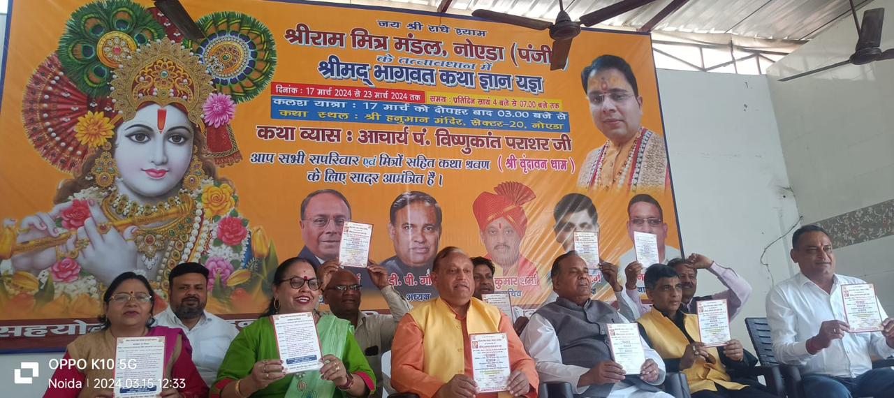 प्रेसवार्ता को संबोधित करते हुए समिति के अध्यक्ष धर्मपाल गोयल ने बताया कि फाल्गुन मास एवं होली महोत्सव के अवसर पर श्रीमद्भागवत कथा का आयोजन कराया जा रहा है, जिसमें कथा व्यास जी द्वारा सैकड़ों नोएडावासियों को श्रीमद्भागवत जी की ज्ञानवर्धक कथा का श्रवण कराया जायेगा। उन्होंने कहा कि श्रीराम मित्र मंडल कथा के आयोजन के माध्यम से भगवान श्रीकृष्ण के आदर्शों को जन जन तक पहुंचाने का कार्य करेगी। कथा के संयोजक अनिल गोयल ने बताया कि भागवत कथा के आयोजन से नोएडा के निवासियों को भगवान श्रीकृष्ण के चरित्र को जानने का अवसर मिलेगा।