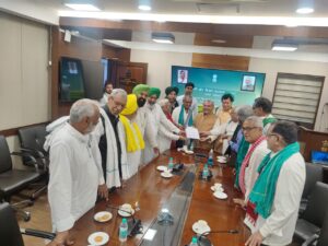A 15 member Delegation of SKM met the Union Minister for Agriculture & Farmers Welfare at Krishi Bhawan and submitted 2 Memoranda to him. [Copies attached]. Discussions were held and the Govt agreed to engage in dialogue with SKM on ongoing basis to resolve the pending and burning issues of farmers. SKM informed the Minister that if the demands are not met in a time-bound manner, SKM shall announce further protests and agitations. The Delegation comprised of (1) Shri R. Venkaiya – All India Kisan Sabha (2) Dr. Sunilam – Kisan Sangharsh Samiti (3) Shri Prem Singh Gehlawat – All India Kisan Mahasabha (4) Shri V Venkatramaiya – All India Kisan Mazdoor Sabha (5) Shri Suresh Koth – Bhartiya Kisan Mazdoor Union (6) Shri Yudhvir Singh – Bhartiya Kisan Union (7) Shri Hannan Mollah – All India Kisan Sabha (8) Shri Buta Singh Burjgill – Bhartiya Kisan Union (Dakunda) (9) Shri Joginder Singh Ugraha – Bhartiya Kisan Union (Ugraha) (10) Shri Satyawan – All India Kisan Khet Mazdoor Sangathan (11) Shri Avik Saha – Jai Kisan Andolan (12) Shri Darshan Pal – Krantikari Kisan Union (13) Shri Manjeet Rai – Bhartiya Kisan Union (Doaba) (14) Shri Harinder Lakhowal – Bhartiya Kisan Union (Lakhowal) (15) Shri Satnam Singh Behru – Indian Farmers Association.