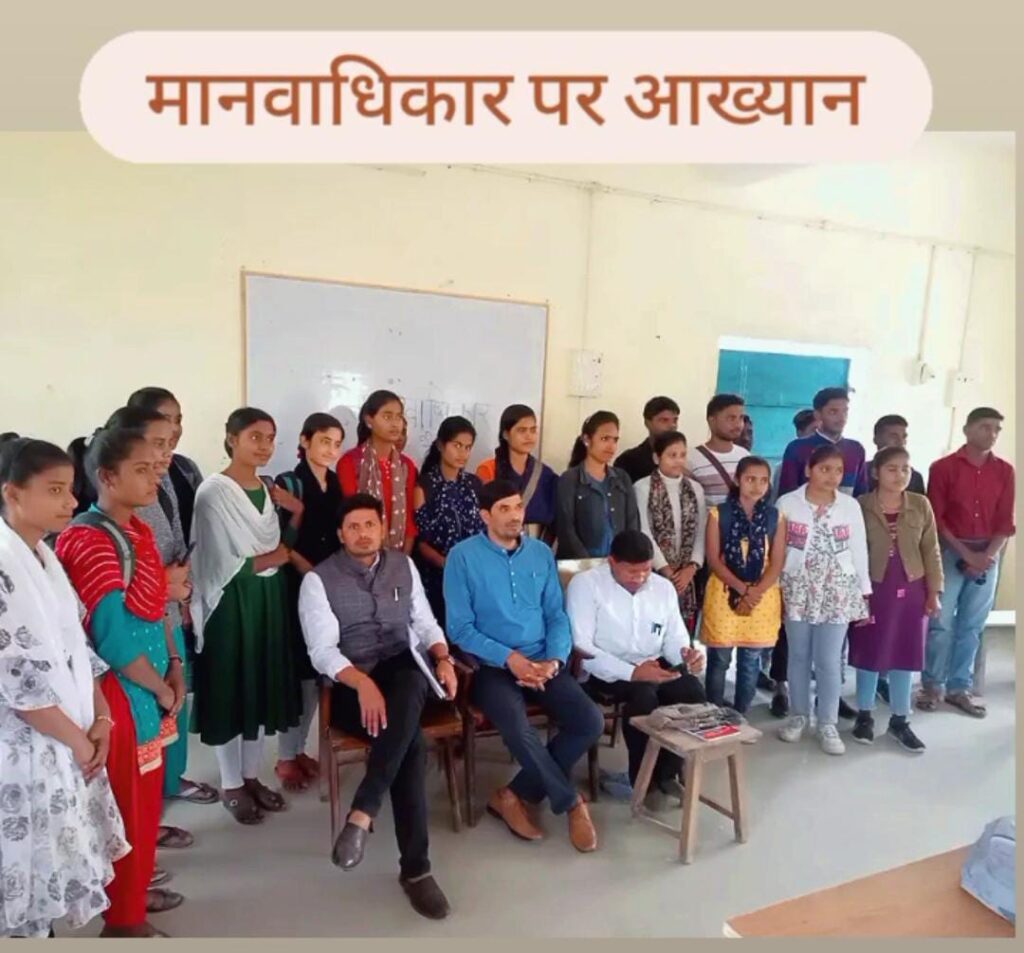 कार्यक्रम में बतौर मुख्य अतिथि डॉ राजेश कुमार यादव ने कहा कि सौहार्द के वातावरण में एक व्यक्ति का मानवीय अधिकार दूसरे व्यक्ति पर कर्तव्य आरोपित करता है। कर्तव्य के अनुपालन को विधि के द्वारा सुनिश्चित कराया जाता है। इस प्रकार इनसे सामाजिक सौहार्द के लिए सभी प्रकार के सिद्धान्तों को प्रबलता प्राप्त होती है। मानवाधिकार प्राकृतिक अथवा सार्वभौम अधिकारों के रूप में संरक्षित हित है । डा. वृंदावन लाल जाटव विभागाध्यक्ष, हिंदी विभाग, ने उक्त विषय की साहित्यिक व्याख्या करते हुए कहा कि दरअसल मानवाधिकार के प्रकारों की कोई निश्चित संख्या नही है। मानवाधिकार की सूचि में समय के साथ बदलाव होता रहता है। मानवाधिकारों को सामान्य तौर पर प्राकृतिक अधिकार, नैतिक अधिकार, कानूनी अधिकार, नागरिक अधिकार, मौलिक अधिकार और आर्थिक, सामाजिक एवं सांस्कृतिक अधिकार की श्रेणियों में बांटा गया है।