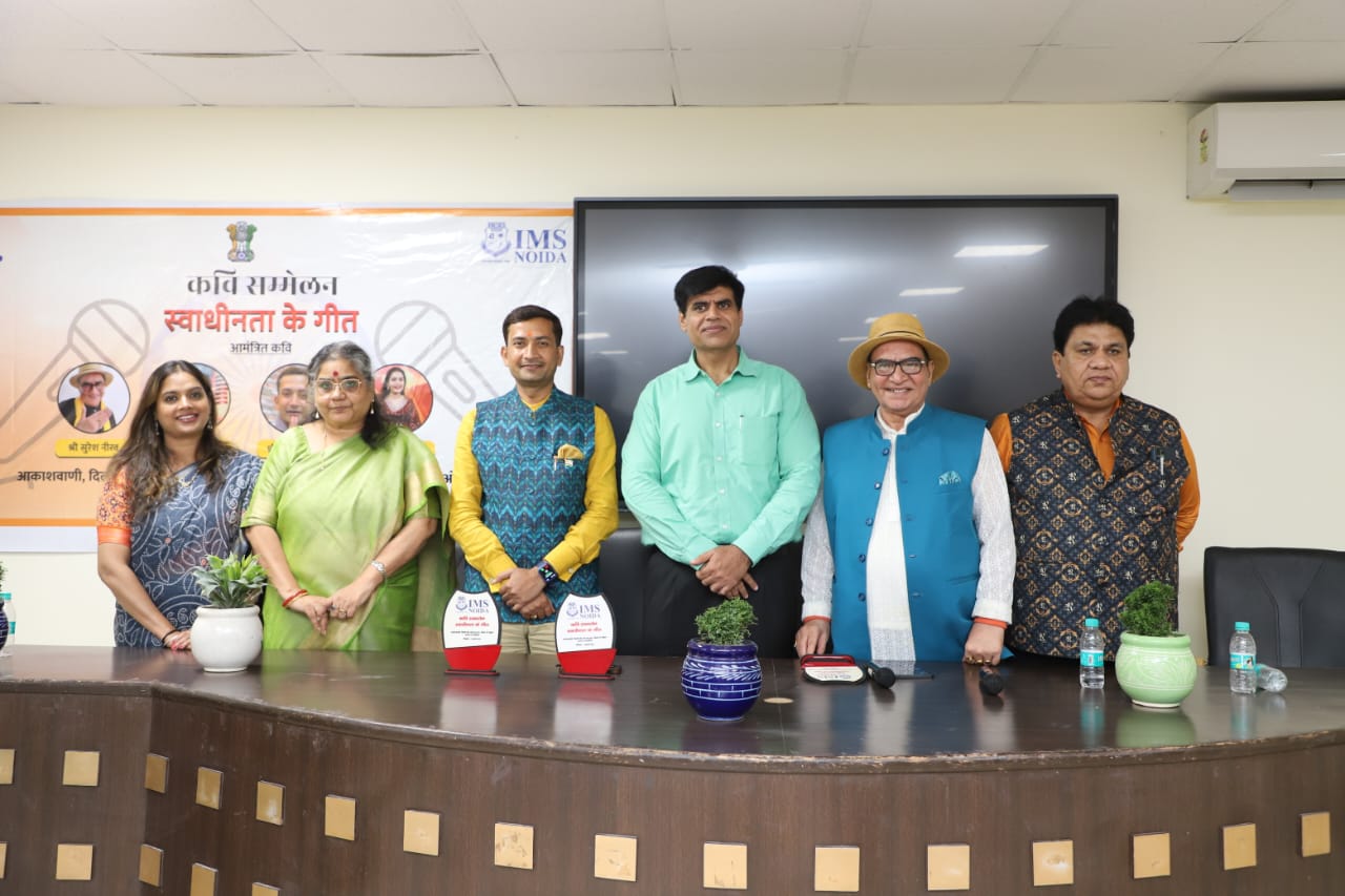 नोएडा। इंस्टीट्यूट ऑफ मैनेजमेंट स्टडीज (आईएमएस) नोएडा में स्वतंत्रता दिवस के पूर्व साप्ताहिक बेला पर कवि सम्मेलन का आयोजन हुआ। दूरदर्शन दिल्ली एवं आईएमएस नोएडा के संयुक्त तत्वावधान में आयोजित कार्यक्रम के दौरान स्वाधीनता के गीत सुनकर श्रोता मंत्रमुग्ध हुए। वहीं कवि सुरेश नीरव, दिनेश रघुवंशी, संजीव मुकेश एवं डॉ. ज्योति उपाध्याय ने स्वाधीनता के गीत से कार्यक्रम में चार चांद लगाए।