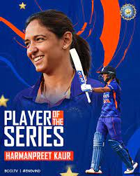 Player Of The Series अवार्ड की दावेदार रही Harmampreet Kaur। सीरीज के पहले मैच में इन्होंने 74 रन की नाबाद पारी खेली और दूसरे मैच में हरमनप्रीत शतक के साथ 143 रन की खेलते हुए नाबाद रही।