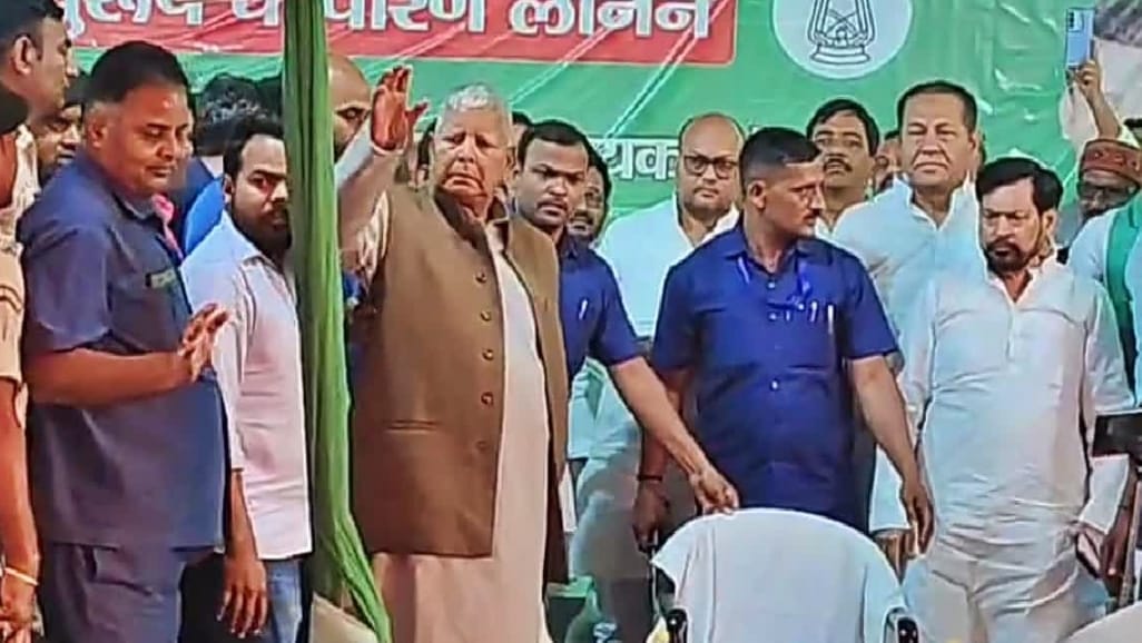 मोतिहारी: राजद सुप्रीमो सह पूर्व मुख्यमंत्री लालू प्रसाद यादव कल्याणपुर से राजद विधायक मनोज कुमार यादव के पिता स्व. कामरेड यमुना यादव की पुण्यतिथि पर कोटवा प्रखंड के जसौली जमुनिया में आयोजित कार्यक्रम में भाग लेने आज आए थे। इस दौरान उन्होंने सभा को संबोधित करते हुए कहा कि कोई माई का लाल तेजस्वी के नेतृत्व में सरकार बनने से रोक नहीं सकता। उन्होंने लोगों से चुनाव में तेजस्वी यादव के नेतृत्व में सरकार बनाने का आह्वान किया। लालू प्रसाद यादव ने पूर्व विधायक यमुना यादव को याद किया और उनके कार्यकाल के बारे में बताया। वहीं आगामी विधानसभा चुनाव में राजद को वोट देने की अपील भोजपुरी में करते हुए कहा कि तेजस्वी को मुख्यमंत्री बनाना है। कल्याणपुर से मनोज यादव के साथ जिला के सभी सीट पर जीत दिलाकर सरकार बनवाई.उन्होंने कहा कि तेजस्वी यादव का माई-बहन योजना बहुत अच्छी योजना है. उसके संबंध में गांव-गांव तक लोगों को बताना है। उन्होंने पूर्व विधायक स्व यमुना यादव को महान समाजवादी नेता बताया। संबोधन के बाद वे विधायक मनोज कुमार यादव के आवास पर पहुंचे और पूर्व विधायक स्व. यमुना यादव की प्रतिमा पर श्रद्धांजलि दी। राजद सुप्रीमो लालू यादव दोपहर करीब एक बजे मोतिहारी पहुंचे। उनके आगमन को लेकर राजद नेताओं और कार्यकर्ताओं में जबरदस्त उत्साह दिख रहा था। लालू यादव को देखने और सुनने के लिए भारी भीड़ जुटी थी।