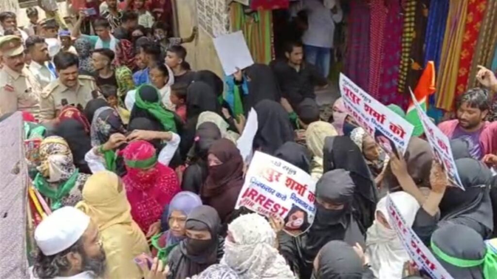 नूपुर शर्मा के पैगम्बर मोहम्मद पर विवादित टिप्पणी (Nupur Sharma Comment on Muhammad) के बाद भले ही उन्हें भाजपा ने पार्टी से निकाल दिया हो पर देशभर में प्रदर्शन हो रहे हैं। जहां उत्तर प्रदेश के कानपुर, सहारनपुर, फिरोजपुर में नूपुर शर्मा की गिरफ्तारी की मांग को लेकर प्रदर्शन हो रहे हैं वहीं अब बरेली में भी प्रदर्शन शुरू हो चुका है। रांची में दो लोगों की मौत हो गई है। पश्चिमी बंगाल के हावड़ा में भी प्रदर्शन ने हिंसक रूप ले लिया है।