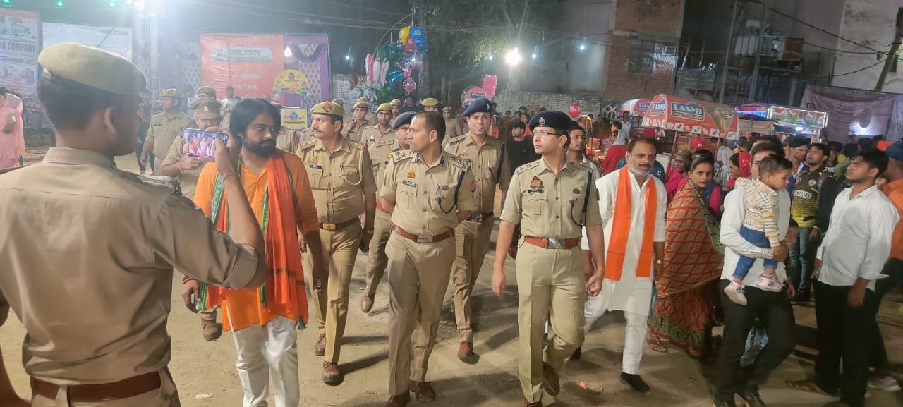 नोएडा। पुलिस कमिश्नर गौतमबुद्धनगर लक्ष्मी सिंह के निर्देशानुसार अपर पुलिस आयुक्त मुख्यालय गौतमबुद्धनगर बबलू कुमार द्वारा डीसीपी सेन्ट्रल नोएडा शक्ति मोहन अवस्थी व एसीपी तृतीय सेंट्रल नोएडा वी एस वीर कुमार के साथ थाना सूरजपुर क्षेत्र के अंतर्गत शनिवार रात को विजयदशमी पर्व के दृष्टिगत लगने वाले मेले के दृष्टिगत मेला स्थल/आसपास के क्षेत्र का भ्रमण करते हुए मेला आयोजकों व स्थानीय नागरिको के साथ वार्तालाप किया गया और उनके द्वारा सुरक्षा व्यवस्था का जायजा लेते हुए थाना प्रभारी को निर्देशित किया। मेले में पुलिसकर्मियों द्वारा सर्तक रहते हुए ड्यूटी की जाये एवं सुरक्षा व्यवस्था के कडे़ इंतजाम रखे जाये। उनके द्वारा मेला आयोजकों के साथ यातायात व्यवस्था व शांति व्यवस्था को लेकर संवाद करते हुए आवश्यक दिशा निर्देश दिये गये।