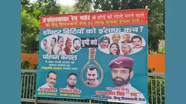 पटना। कोलकाता में डॉक्टर के साथ रेप और उसके बाद उसकी हत्या के मामले को लेकर पूरे देश में उबाल है। इसका असर राजधानी पटना के सड़कों पर भी दिखाई दे रहा है। पटना के एनएमसीएच, आईजी आईएमएस अस्पताल के डॉक्टर आरोपियों को जल्द से जल्द दोषी ठहराकर सजा दिलाने की मांग को लेकर ने प्रोटेस्ट कर रहे हैं। अन्य सामाजिक संगठनों की ओर से कैंडल मार्च निकाला जा रहा है। इसी बीच राजधानी पटना की सड़कों पर एक पोस्टर लगाया गया है, जिसमें कोलकाता में सामूहिक बलात्कार के बाद डॉक्टर के हत्यारे को गोली मारने वाले के लिए 50 लाख रुपये का इनाम घोषित किया गया है। यह पोस्ट हिंदू शिव भवानी सेना की ओर से लगाया गया है।