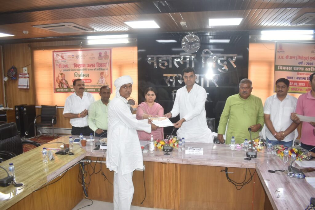 बिजनौर। माननीय प्रधानमंत्री जी द्वारा वाराणसी से आज प्रधानमंत्री किसान सम्मान निधि योजना की 20वीं किस्त बटन दबाकर जारी की गयी। जनपद स्तरीय ‘‘पी0एम0किसान-उत्सव दिवस’’ कार्यक्रम का सीधा प्रसारण वर्चुउल रूप से विदुर सभागार कलेक्ट्रेट बिजनौर में किया गया। उक्त कार्यक्रम में मुख्य अतिथि मा0 साकेन्द्र प्रताप सिंह, अध्यक्ष जिला पंचायत बिजनौर एवं जिलाधिकरी श्रीमती जसजीत कौर द्वारा प्रतिभाग किया गया। उक्त कार्यक्रम जिले के समस्त विकास खण्ड, समस्त कोपरेटिव सोसाईटी एवं जनपद की समस्त ग्राम पंचायतों में वर्चुउल रूप में ‘‘पी0एम0किसान-उत्सव दिवस’’ का सीधा प्रसारण किया गया।