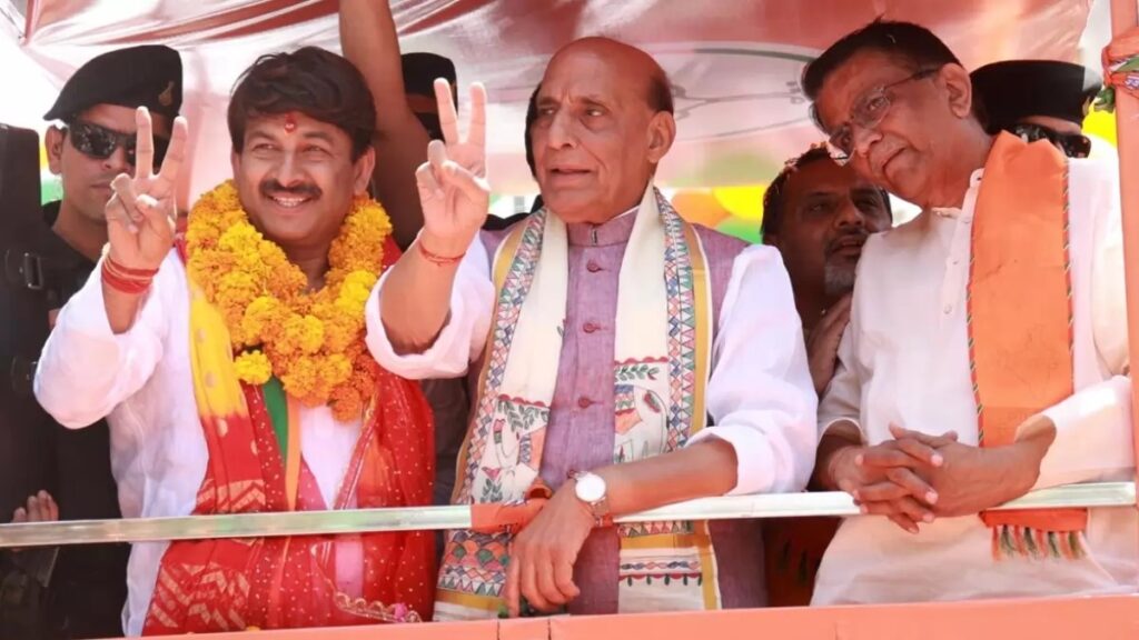 नई दिल्ली। राजधानी दिल्ली के उत्तर पूर्वी लोकसभा सीट से भाजपा उम्मीदवार मनोज तिवारी ने बुधवार 1 मई को यमुना विहार से उत्तर पूर्वी जिला कार्यालय तक रोड शो किया और इस दौरान केंद्रीय रक्षा मंत्री राजनाथ सिंह ने रोड शो की शुरुआत करते हुए पीएम मोदी की जमकर तारीफ की। उन्होंने कहा कि हमारा भारत पीएम मोदी के नेतृत्व में एक नई सोच के साथ आगे बढ़ रहा है।