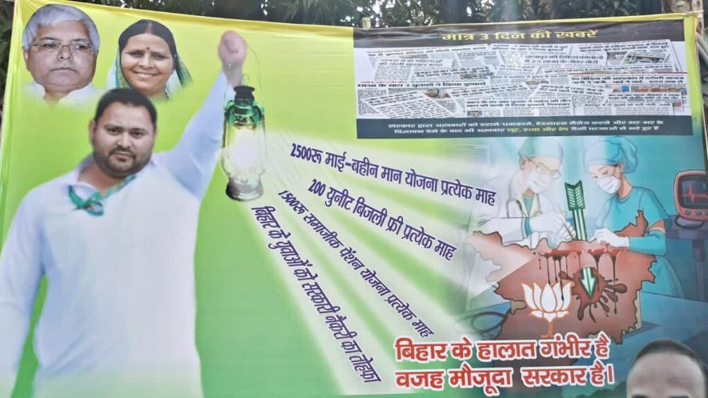 पोस्टर में दिखाई गईं तेजस्वी की ओर से की गई घोषणाएं