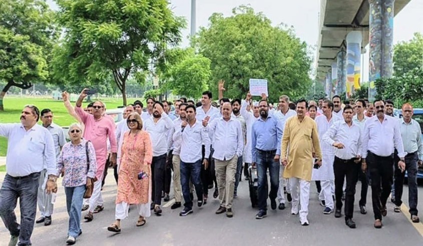 ग्रेटर नोएडा । आरडब्ल्यूए के 40 से अधिक ने गुरुवार को ग्रेटर नोएडा प्राधिकरण के कार्यालय का घेराव प्रदर्शन किया और ग्रेटर नोएडा प्राधिकरण के खिलाफ जमकर नारेबाजी भी की। इस दौरान उन्होंने अधिकारियों को समस्याओं से संबंधित एक ज्ञापन भी सौंपा। फेडरेशन ऑफ आऱडब्ल्यूएज के उपाध्यक्ष आलोक नागर ने बताया है कि पैदल मार्च कर सांकेतिक रूप से प्राधिकरण के गेट को बंद किया गया और एक 7 सूत्रीय ज्ञापन ग्रेटर नोएडा प्राधिकरण के ओएसडी हिमांशु वर्मा को सौंपा गया।