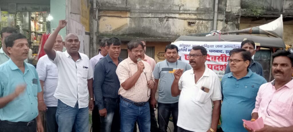 संयुक्त ऑल इंडिया जन आंदोलन संघर्ष मोर्चा ने सोमवार को झारखंड धनबाद के निरसा क्षेत्र में सहारा इंडिया के खिलाफ भुगतान की मांग को लेकर जन जागृति मुहिम चलायी। यह मुहिम 7 सितंबर को धनबाद जिला मुख्यालय पर होने वाले धरना प्रदर्शन को लेकर चलाई जा रही है। सोमवार शाम के समय निरसा चौक पर नुक्कड़ मीटिंग का आयोजन किया गया, जिसमे मोर्चा के राष्ट्रीय उपाध्यक्ष नागेंद्र कुमार कुशवाहा ने कहा कि सहारा इंडिया विगत 2 सालो से भुगतान नहीं दे रहा है।