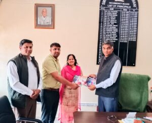 सिवानी मंडी । बड़वा के टैगोर शिक्षण संस्थान एवं सिवानी के सेठ राजकीय महाविद्यालय में शुक्रवार को एक समारोह आयोजित किया गया, जिसमें क्षेत्र के ‘लेखक दम्पति’ सत्यवान ‘सौरभ’ एवं प्रियंका ‘सौरभ’ ने अपनी पुस्तकें ‘तितली है खामोश’ और ‘दीमक लगे गुलाब’ की प्रतियां राजकीय महाविद्यालय के प्राचार्य राजकुमार ख़यालिया, एनसीसी इंचार्ज असिस्टेंट प्रोफेसर सुनीता जनावा, एवं बड़वा के टैगोर शिक्षण संस्थान के प्राचार्य वरुण सिंह एवं टैगोर स्कूल के प्रिंसिपल ललित बल्हारा को भेंट की।