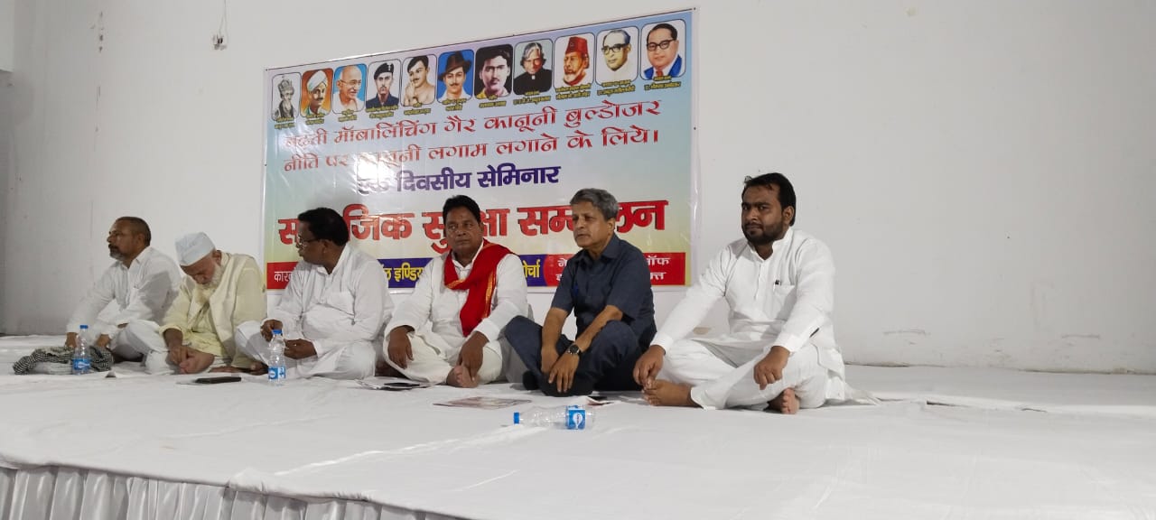 नई दिल्ली। लगातार बढ़ रही मॉब लिंचिंग की घटना और बुलडोजर के इस्तेमाल पर आज दिल्ली के राजाराम मोहन राय हाल में एक सेमिनार आयोजित किया गया, तहरीक कारवांन ए इत्तेहाद,आल इंडिया यूनाइटेड मुस्लिम मोर्चा,नेशनल फ्रंट ऑफ इंडिया के संयुक्त प्रयास से किया गया जिस में दिल्ली,एन,सी,आर के सामाजिक कार्यकर्ताओं ने हिस्सा लिया वक्ताओं ने बढ़ती मॉबलिंचिंग पर चिंता जताते हुए सरकार से ऐसे लोगों से सख्ती से निमटने की अपील करते हुए कहा कि बेहतर है कि सरकार मुसलमानों को भी अत्त्याचार निवारण अधिनियम 1989, में शामिल कर ले ताकि धार्मिक हिंसा पर लगाम लगाना आसान हो सके, साथ ही साथ लगातार मस्जिदों और दूसरे धार्मिक स्थलों पर चल रहे बुल्डोजर पर भी वक्ताओं ने चिंता व्यक्त करते हुए सरकार से इस पर संविधान सम्मत और पारदर्शी तरीके काम करने की अपील की, अध्यक्षता मौलाना के, जेड, बुखारी ने की, संचालन मुस्लिम मोर्चा के प्रवक्ता हाफिज गुलाम सरवर ने की, वक्ताओं में मुख्य रूप से जीशान हैदर मलिक संयोजक कारवांन ए इत्तेहाद, एडवोकेट ताहिर हुसैन, संयोजक नेशनल फ्रंट ऑफ इंडिया, एडवोकेट वसी अहमद, मेंहदी हसन मंसूरी, नसीर इदरीसी, अनवर सलीम,अमजद सैफी, साहिल शम्सी,फिरोज खान, डा.इकरार भारतीय,युसूफ सैफी,इत्यादि ने अपनी बात रखी, मुख्य अतिथि परमवीर चक्र विजेता वीर अब्दुल हमीद के पोते जमील आलम थे।