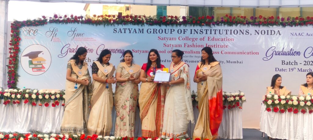 नोएडा । सुप्रसिद्ध एसएनडीटी महिला विश्वविद्यालय, मुंबई से संबद्ध, देश के प्रतिष्ठित शैक्षणिक संस्थानों में से एक, सत्यम ग्रुप ऑफ इंस्टीट्यूशंस ने आज अपने वार्षिक दीक्षांत समारोह की सफलतापूर्वक मेजबानी की। डिग्रियाँ सम्मानित मुख्य अतिथि प्रो. शशिकला वंजारी, कुलपति एनआईईपीए, राष्ट्रीय शिक्षा योजना एवं प्रशासन संस्थान द्वारा प्रतिष्ठित गणमान्य व्यक्तियों – श्रीमती स्नेह सिंह, अध्यक्ष, एसजीआई, सचिव, सीए प्रदीप गुप्ता, प्रिंसिपल डॉ. बिनीता अग्रवाल, एससीई, डॉ. वंदना जागलान, एसएफआई, वाइस प्रिंसिपल डॉ. नीतू मल्होत्रा, एसएफआई, सुश्री नेहा अग्रवाल, एचओडी, एससीई, सुश्री प्रीति गोयल, आईक्यूएसी सेल समन्वयक, एससीई, डॉ. एम. आलम, डीन, एसजेएमसी , प्रियंका सरकार, एचओडी, एसजेएमसी, और सभी विभागों के सदस्य की उपस्थिति में प्रदान की गईं। प्रो. वंजारी ने स्नातक होने वाले छात्राओं को बधाई दी और उन्हें अपने सपने पूरे करने के लिए भविष्य में प्रयासों की और ध्यान देने को कहा ।