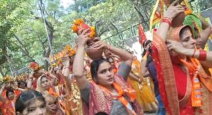 नोएडा सेक्टर 82 स्थित ईडब्ल्यूएस पॉकेट 12 में आयोजित श्रीराम कथा का विशाल कलश यात्रा के साथ हुआ शुभारंभ हुआ। बैंड बाजे व ढोल नगाड़ों साथ 300 महिलाओं ने अपने सिर पर कलश रखकर पूरे सेक्टर में कलश यात्रा निकाली। शोभा यात्रा में आगे आगे घोड़े फिर बैंड बाजा इसके बाद कथा व्यास महामंडलेश्वर पंचमानंद महाराज का रथ उसके पीछे कलश धारण किए महिलाएं एवं भक्तजन शोभायात्रा को शोभायमान कर रहे थे।