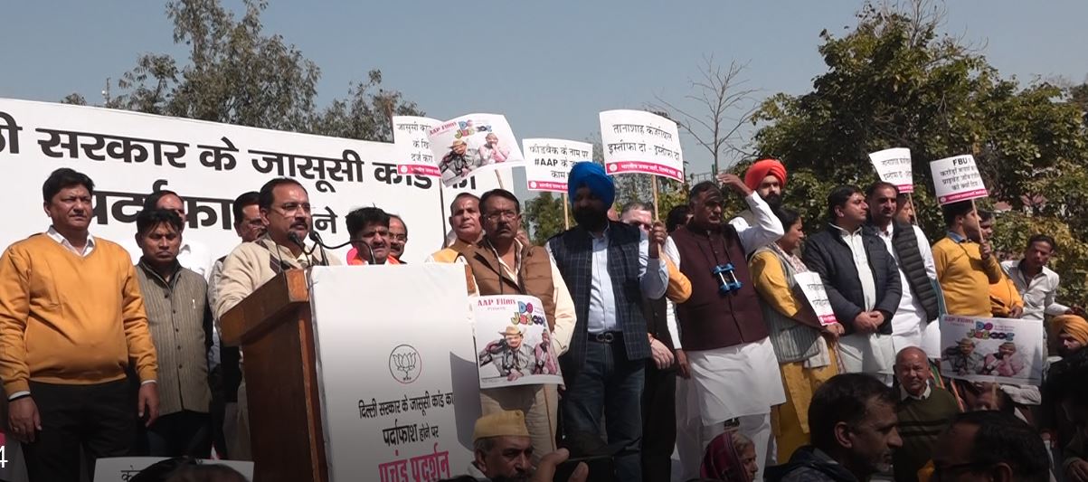 दिल्ली में बीजेपी-आप की मेयर चुनाव को लेकर हो रहे तनातनी के बीच आब बीजेपी ने आप सरकार पर एक और घोटाले का आरोप लगाया है। भाजपा ने आरोप लगाया है कि दिल्ली की अरविंद केजरीवाल सरकार उसके नेताओं की जासूसी करा रही है। जिसके विरोध में 9 फरवरी को दिल्ली के ITO स्थित शाहिदी पार्क के समक्ष विशाल धरना प्रदर्शन किया गया। इस दौरान यहां पर बीजेपी के तमाम नेता,मंत्रीगण हाथों में दूरबीन लिए मौजूद रहें। जहां उन्होंने दिल्ली सरकार के खिलाफ नारेबाज़ी की। दरसअल इस दौरान बीजेपी के वीरेंद्र सचदेवा ने कहा सीएम केजरीवाल सरकार 2015 में अपनी स्थापना से आराजकता से काम करती रही है। और राजनीतिक विरोधियों के प्रति दूतिष भाव से काम करती है। उनके दमन में विश्वास करती है।
