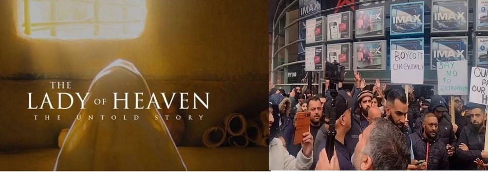 दरअसल 3 जून (Lady of Heaven release date ) को यूके के सिनेमाघरों में रिलीज हुई फिल्म दि लेडी ऑफ़ हेवन फिल्म में फातिमा अल-जहरा को आतंकवाद की पहली शिकार बताने का प्रयास किया गया है। यूके के ये प्रदर्शन इतने बड़े स्तर पर हो रहे हैं कि कई सिनेमा घरों को फिल्म की स्क्रीनिंग रद्द करने को मजबूर कर दिया गया है।