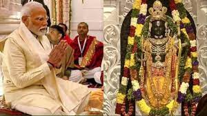 फिर स्वामी गोविंददेव मे चरणामृत पिलाकर उनका उपवास तुड़वाया। क्योंकि प्रधानमंत्री प्रभु श्रीराम की प्राण प्रतिष्ठा के लिए 12 जनवरी से कड़े उपवास पर थे। प्राण प्रतिष्ठा से पहले सुबह मंत्रोच्चार के साथ रामलला को जगाया गया। इसके बाद वैदिक मंत्रों के साथ मंगला चरण हुआ, फिर 10 बजे से शंख समेत 50 से ज्यादा वाद्य यंत्रों की मंगल ध्वनि बजाई गई। इस कार्यक्रम के बाद प्रधानमंत्री ने अपने ही अंदाज़ में थोड़े राजनीतिक तीर भी फेंके… उन्होंने बताया कि लोग कहते थे राम मंदिर मंदिर बनेगा तो आग लग जाएगी, लेकिन राम आग नहीं ऊर्जा हैं, राम विवाद नहीं समाधान हैं। प्रधानमंत्री ने कहा कि ये भारत के विकास का अमृतकाल है।