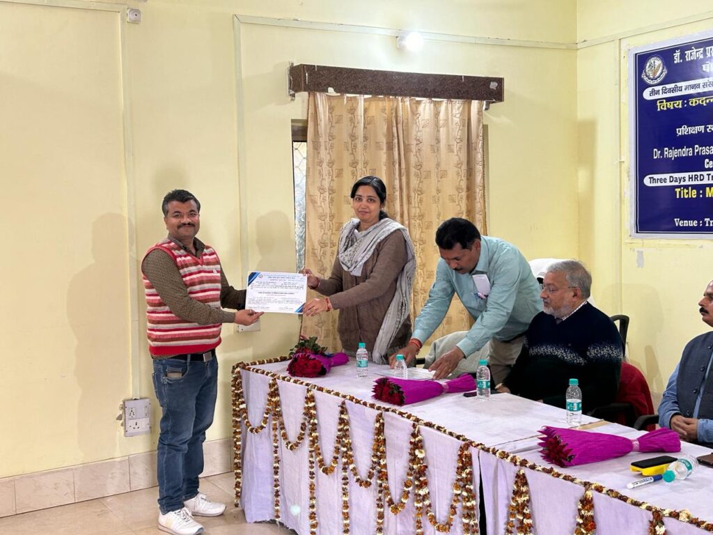 समस्तीपुर पूसा। डा राजेंद्र प्रसाद केंद्रीय कृषि विश्वविधालय के अधीनस्थ बीज प्रक्षेत्र निदेशालय के सभागार में चल रहे तीन दिवसीय प्रशिक्षण संपन्न हुई। जिसकी अध्यक्षता करते हुए वैज्ञानिक सह परियोजना मुख्य अन्वेषक डा स्वेता मिश्रा ने कहा कि प्रतिभागी की ओर से प्रशिक्षण में प्राप्त किए गए तकनीकी ज्ञान को धरातल पर उतारने का प्रयास करने की जरूरत है। साथ ही डॉ मिश्रा द्वारा सभी प्रतिभागियों को प्राप्त ज्ञान का उपयोग विश्वविद्यालय प्रक्षेत्र तथा कृषक समुदाय के बीच करने के लिए प्रेरित किया।