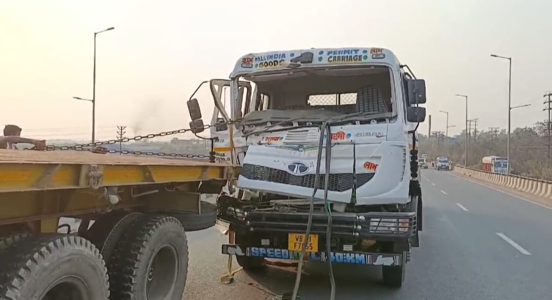 रानीगंज : (संवाददाता अनूप जोशी)आसनसोल से दुर्गापुर की तरफ जाने वाले राष्ट्रीय राजमार्ग के ऊपर बने रानीगंज के मंगलपुर ब्रिज पर आज एक सड़क हादसा हो गया जिसमें एक ट्रेलर चालक को पैर में चोट लग गई घटना के बारे में प्रत्यक्षदर्शियों का कहना है के रानीगंज से दुर्गापुर की तरफ एक ट्रेलर जा रही थी उसके आगे आगे एक 10 चक्का गाड़ी भी दुर्गापुर की तरफ ही जा रही थी रानीगंज के मंगलपुर ब्रिज पर आगे चल रहे गाड़ी में अचानक ब्रेक लगा दिया जिससे पीछे चल रही ट्रेलर अनियंत्रित होकर पीछे से उस आगे वाली गाड़ी से टकरा गई टक्कर इतनी जोरदार थी के ट्रेलर के परखच्चे उड़ गए और ट्रेलर का चालक केबिन में फंस गया दूसरी तरफ आगे वाला चालक अपनी गाड़ी को लेकर मौके से चला गया इधर ट्रेलर के चालक को अपने केबिन में फंसा देख आसपास के लोग वहां पहुंच गए और चालक को किसी तरह खींचकर केबिन से बाहर निकल गया और इलाज के लिए आसनसोल जिला अस्पताल भेजा गया