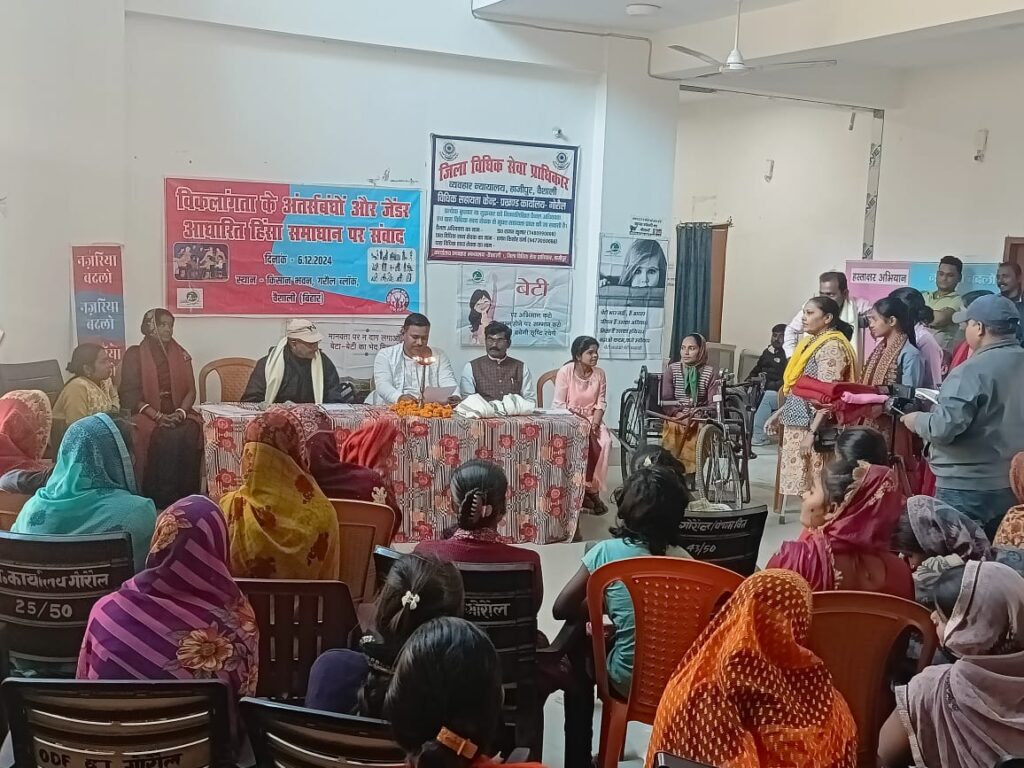 वैशाली। वैशाली जिले के गौरौल प्रखण्ड परिसर स्तिथ सभागार में जेंडर आधारित हिंसा के विरुद्ध16 दिवसीय अंतरराष्ट्रीय अभियान के तहत अन्तर्राष्ट्रीय दिव्यांग दिवस पखवारा के अवसर पर विकलांगता अन्तर्सम्बंध और जेंडर आधारित हिंसा के समाधान पर संवाद का आयोजन किया गया।कार्यक्रम का उद्घाटन प्रखण्ड प्रमुख मुन्ना कुमार, सीओ आंसु कुमार