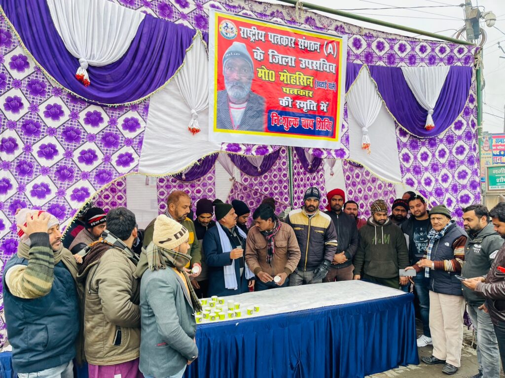 किरतपुर। किरतपुर नगीना चौराहे पर राष्ट्रीय पत्रकार संगठन (ए) के उप सचिव रहे वरिष्ठ पत्रकार मोहम्मद मोहसिन की स्मृति में कड़कड़ाती ठंड को देखते हुए निशुल्क चाय शिविर लगाया गया। शिविर में पहुंचे संगठन के राष्ट्रीय अध्यक्ष जितेंद्र जैन ने बताया कि 5 जनवरी दिन बृहस्पतिवार को अचानक दिल का दौरा पड़ने से निर्भीक, निष्पक्ष, निडर अनुशासित पत्रकार मोहम्मद मोहसिन का इंतकाल हो गया था।